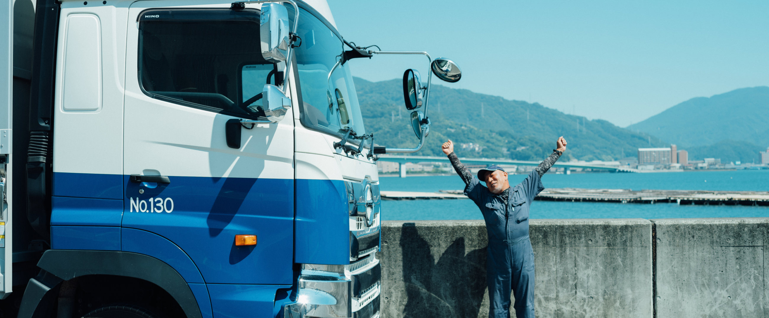 日々の運行に支障が出ないよう、トラックの状態に鋭く目を光らせる平嶋さん。志和貨物自動車の発展に力を尽くす、その活躍ぶりから目が離せません。