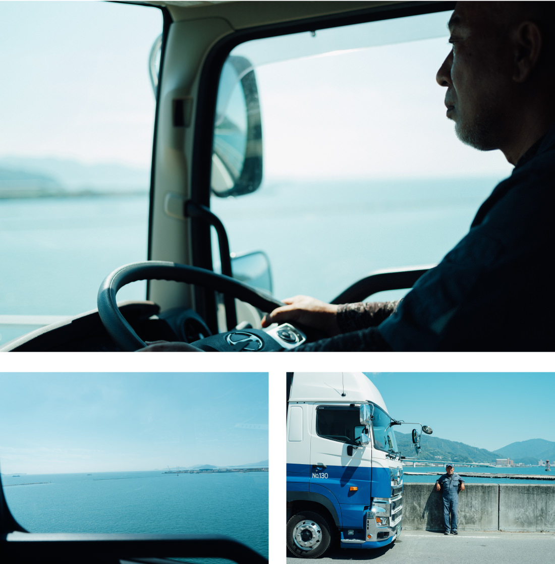 入社3日目にして1人でトラックに乗り、竹原・波方間のフェリーを使用して愛媛県の今治市や松山市に日帰りで行った時のことは今でも忘れられません。当時は携帯電話もカーナビゲーションもない時代。先輩の手書き地図を頼りにいざお客様のところへ向かったものの、道に迷ってしまったのです。さまよい続け、ようやく到着した時刻は、当初の予定を2時間も過ぎていました。