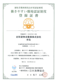 「働きやすい職場認証制度」とは、職場環境改善に向けたトラック、バス、タクシー事業者の取組みを「見える化」することで、求職者の運転者への就職を促進し、各事業者の人材確保の取組みを後押しすることを目的とした制度です。